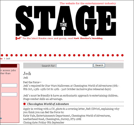 エンターテインメント業界紙「The Stage」に『Jedi』求む!