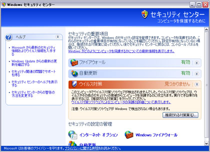 ウィルス対策がでけてないぞぉぉ と 何度も『Windowsセキュリティセンター』さんが言ってくるので(笑) まずはウィルス対策ソフトをインストール!