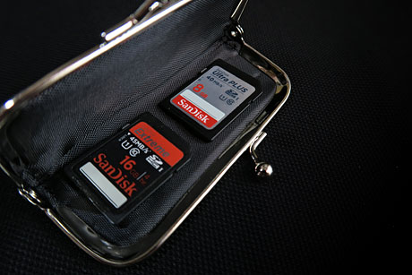 がまぐちタイプだから超薄型、印鑑ケースとして使うのもよいけど、ここはぜひともSDカードケースとして使って欲しいと思ったわけだ